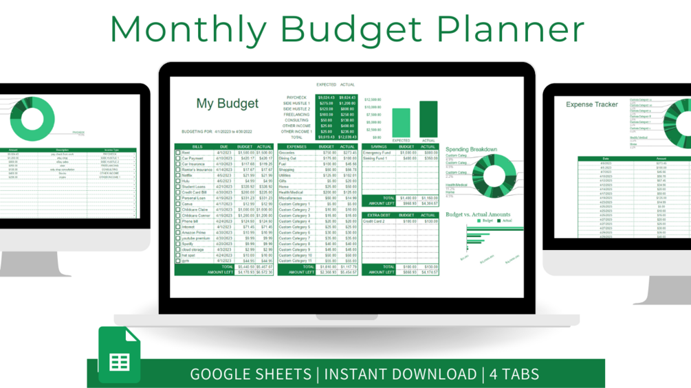 - An income tracker that tracks the income that your bringing in(like paychecks, side hustle income, business income, or investment income). They'll automatically be updated for the actuals columns on the main dashboard!